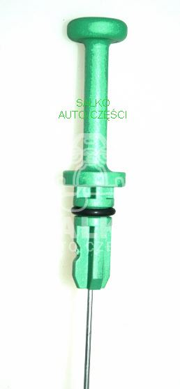 Bagnet metalowy, okrągły drut, z końcówka plastikową ze znakami pomiarowymi, z uchwytem plastikowym, okrągłym (zielony), z oringiem 14mm, stosowany w silnikach o pojemności 1,4-16v typ ET3J4 w samochodach Citroen/Peugeot.