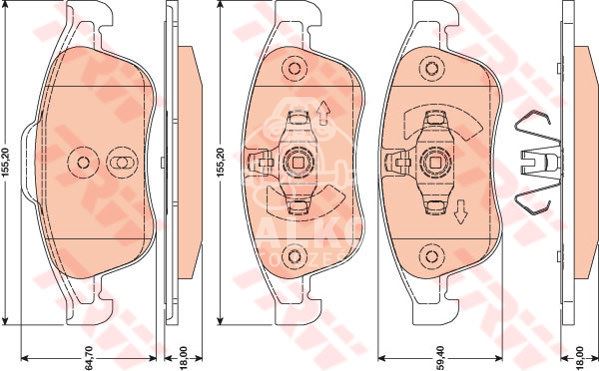 Renault MEGANE III/ SCENIC III/ GRAND SCENIC 02/2009-/ FLUENCE/ Dacia DUSTER/ DOKKER/ LODGY, zestaw klocków hamulcowych przód, na 2 koła, system hamulcowy ATE, niemiecki producent TRW,
