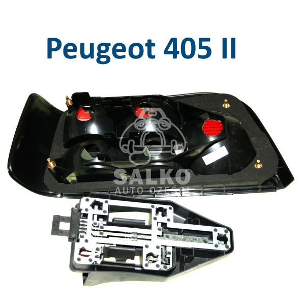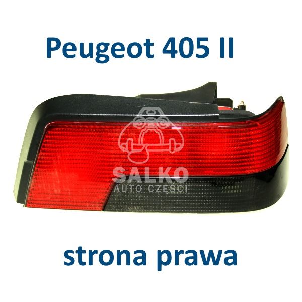 lampa tył Peugeot 405 II SEDAN od rocznika 08.1992 strona prawa - nowa - oryginał produkcji Axo Scintex, lampa kompletna z listwą na żarówki