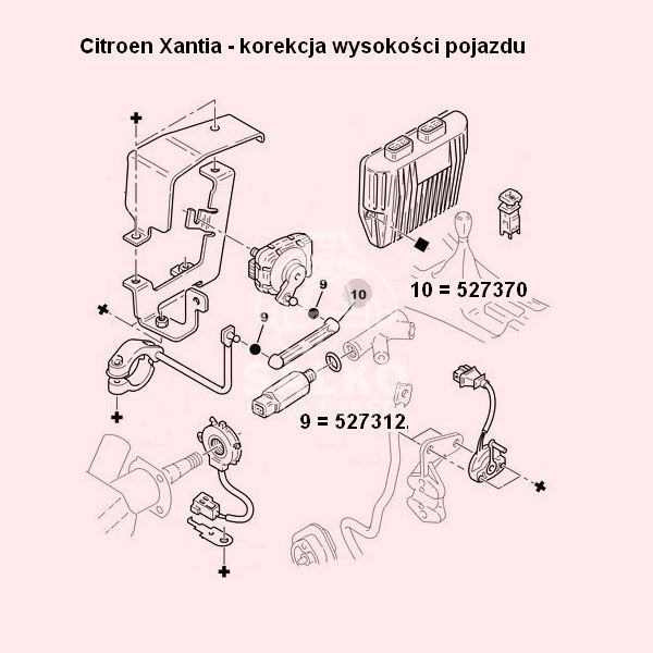 Cięgno korektora prześwitu - do wersji z elektronicznym korektorem, stosowanym w Citroen Xantia z zawieszeniem hydroaktywnym, do czujnika zawieszenia hydroaktywnego, oraz w Citroen C5/ C5 II do korektora położenia pojazdu, o długości 65mm i główkach 7mm. W montażu cięgna dobrze jest wymienić również uszczelkę - podkładkę o symbolu CIT.5273.12, OE NR 527312,