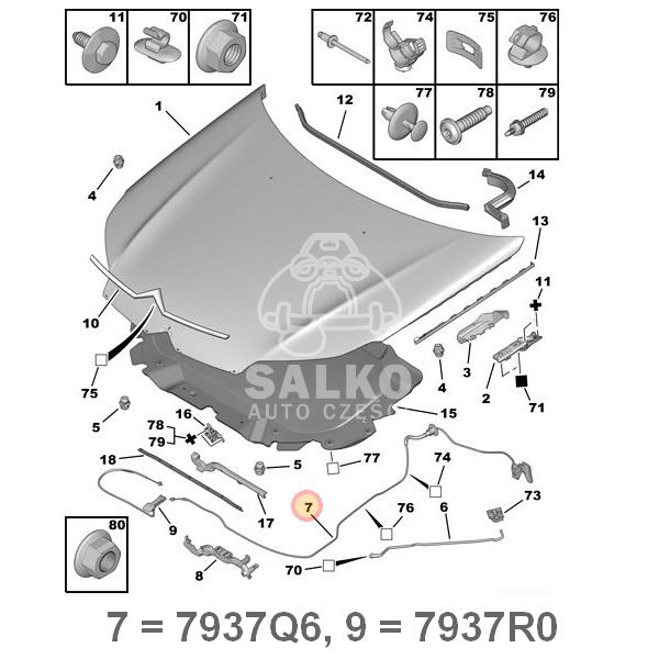 UWAGA: do odbezpieczania maski już otwartej pociągnięciem z kabiny służy dodatkowa linka z uchwytem nr OE 7937R0