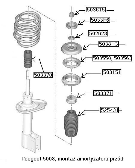 wkład pod sprężynę Berlingo 2005-/ C4/ DS4/ DS5/ Peugeot 3008/ 307/ 308/ 5008/ PARTNER 2005-/ RCZ opór sprężyny przód górny - francuski zamiennik Sasic,