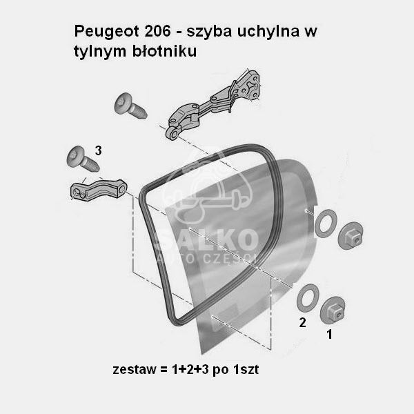 nakrętka zawiasu szyby uchylnej Citroen/ Peugeot, stosowane w modelach z boczną szybą uchylną - zestaw montażu szyby - nowy w zamienniku,