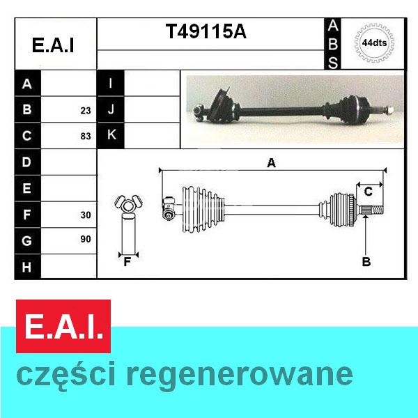 półoś lewa Renault Laguna 2,2D, z ABSem 44 zęby - regeneracja francuska E.A.I.