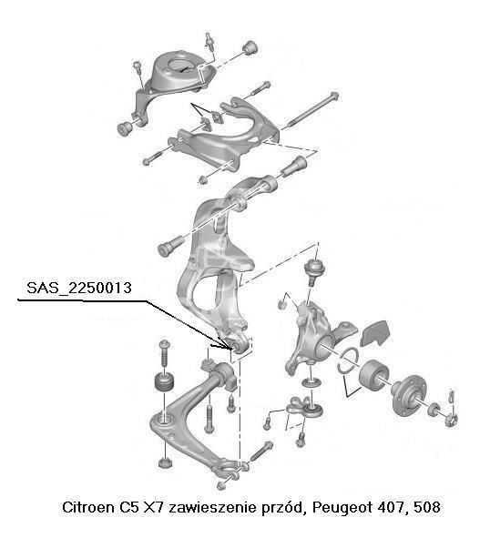 silentblock - wspornika zwrotnicy Peugeot 407 przód dolny - zamiennik francuski SASIC