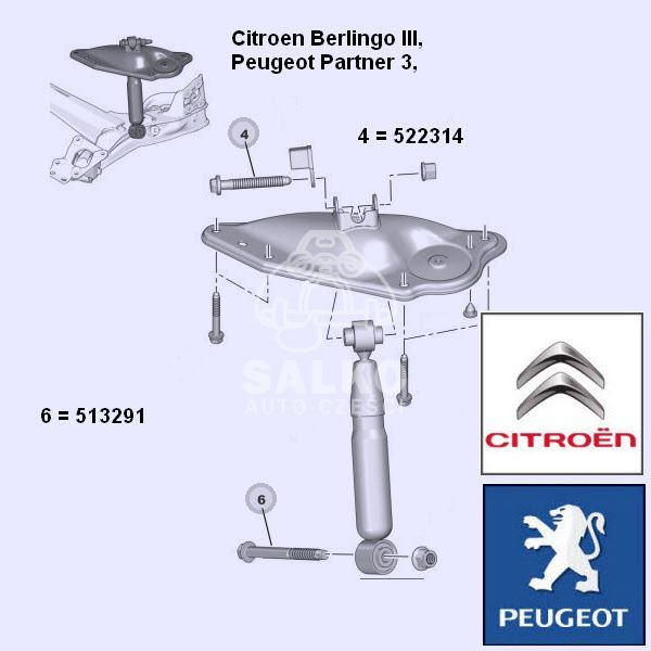 Śruba montażu tylnego amortyzatora Citroen Berlingo III/ Peugeot Partner 3, do dolnego ucha, para do górnego ucha to nr 522314