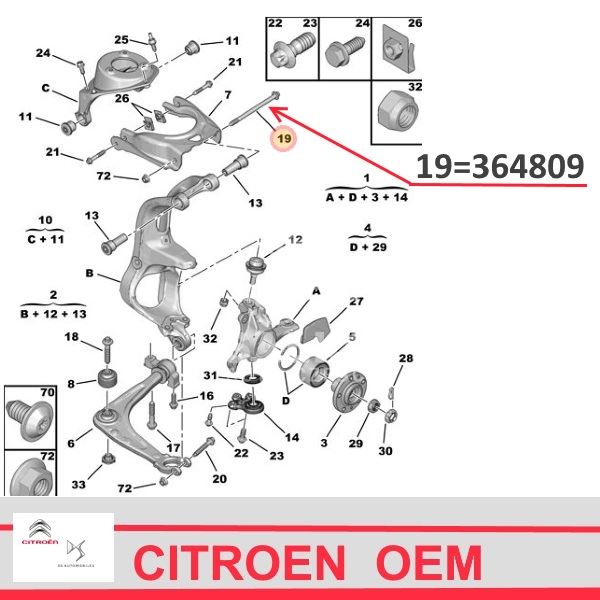 śruba M12x1,25-195mm do łączenia wspornika zwrotnicy z wahaczem górnym - now - oryginał Peugeot nr katalogowy OE 0000364809