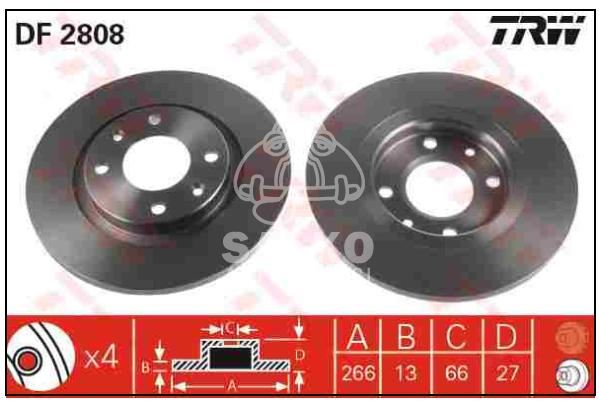 tarcza hamulcowa przednia Citroen BERLINGO/ C2/ C3/ Peugeot PARTNER pełna o wymiarach 266x13mm, do systemu hamulcowego LUCAS - nowa w zamienniku - niemiecki TRW o jakości oryginału,